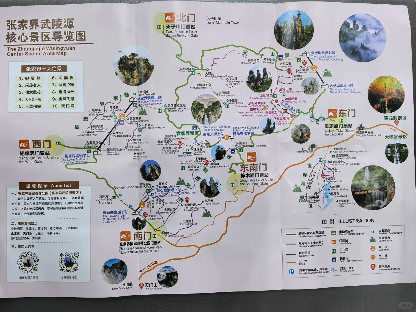 Zhangjiajie National Forest Park is the core sub-scenic area of the Wulingyuan Scenic and Historic Area. Besides this, Wulingyuan also includes three other core sub-scenic areas: Suoxiyu, Tianzi Mountain, and Yangjiajie. Below is the guide map of the core scenic area of Wulingyuan.